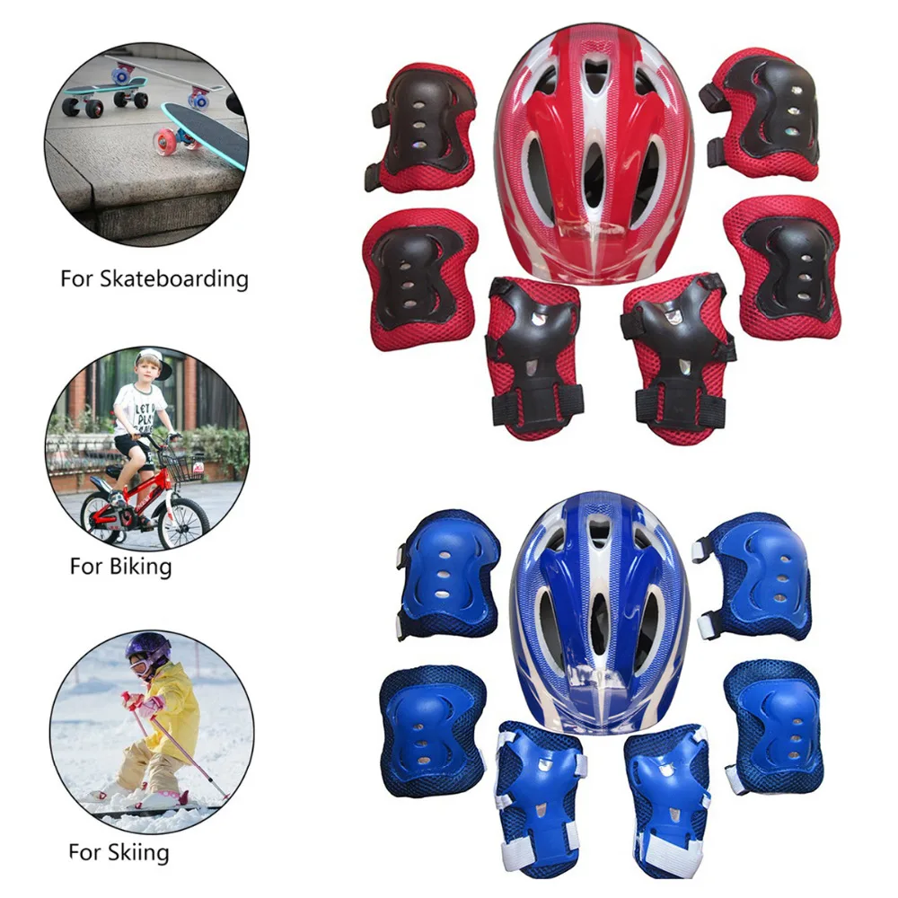 7 Pcs Kid Child Roller Skating Bike Helmet Knee Wrist Guard Elbow Pad Set for Bicycle Helmet Protec only US $11.15
