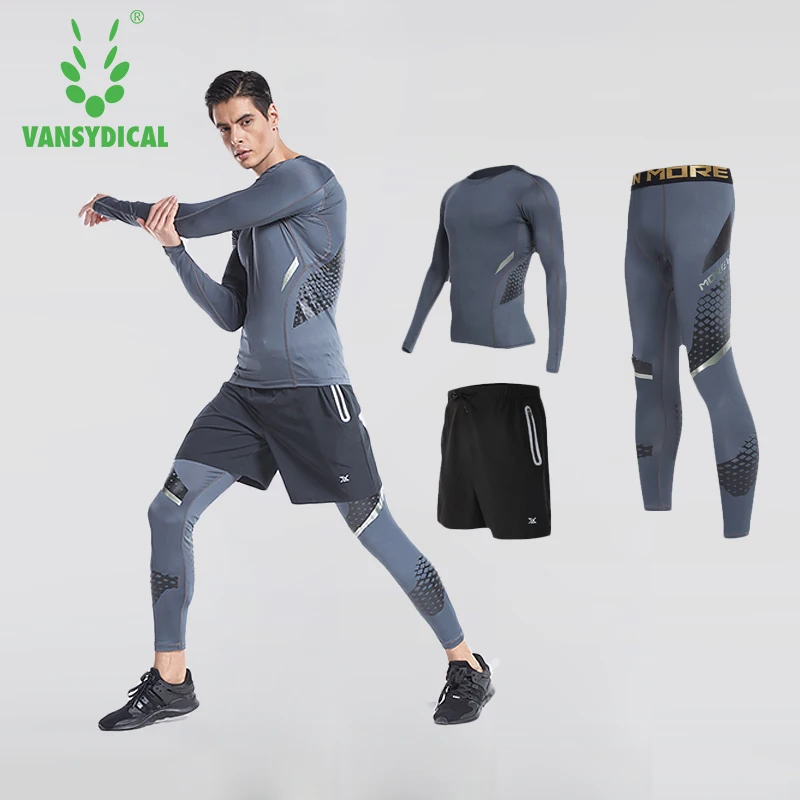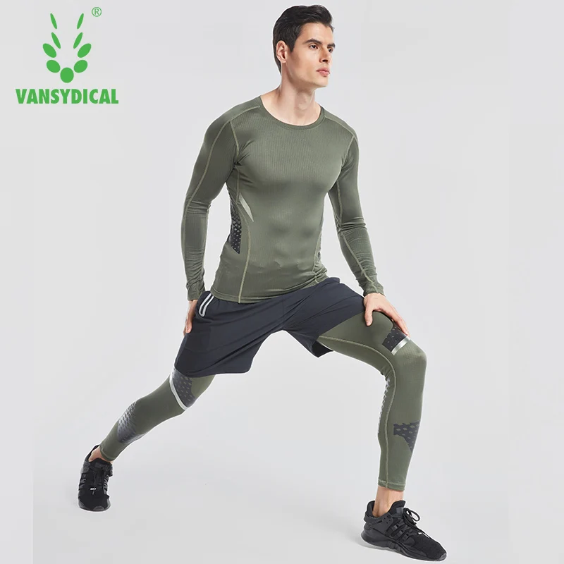 Vansydical 2019 Men Compression Suits Men Breathable Running Suits Mens Sports Shirt Compression Pa only US $27.97