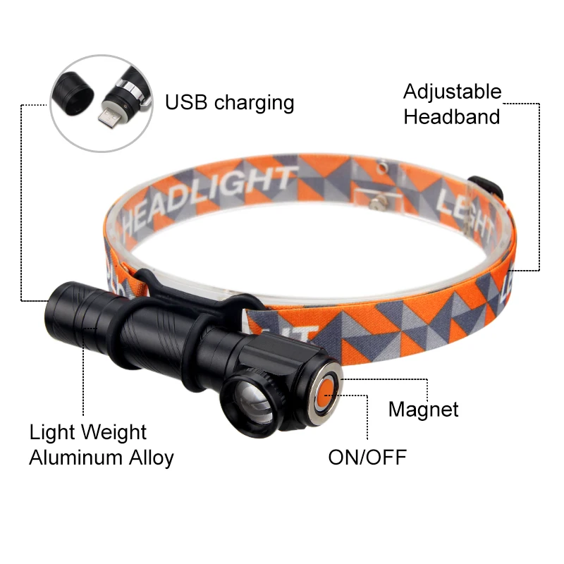 18650 Camping Headlamp 1000 Lumens right angle lamp outdoor headlight with USB direct charge Multifunctional focusing headlight : Click here