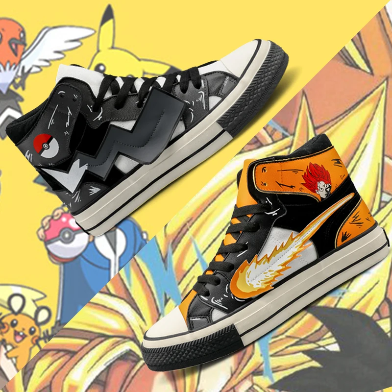 COOLVFATBO Dragon Z Ball Men High Top Canvas Shoes Cool Dragon Ball pikachu Pokemon Goku Vegeta Man only US $19.99