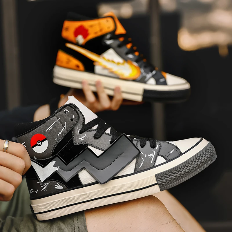 COOLVFATBO Fashion Anime Pokemon Kawaii Pikachu Charmander Poke Ball Canvas Shoe Teens Sports Shoes Sneakers Street Travel Shoes : Click here