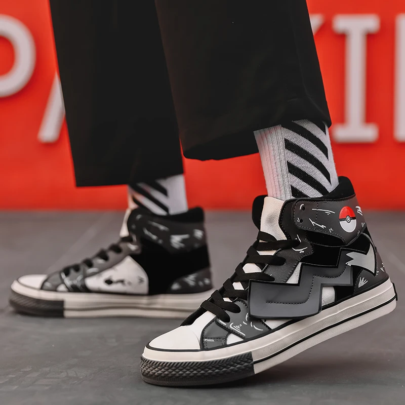 COOLVFATBO Men's Pikachu Shoes Sneakers Autumn Winter PU Leather Classic High Top Men Vulcanized Shoes Casual Men's Boots Male : Click here