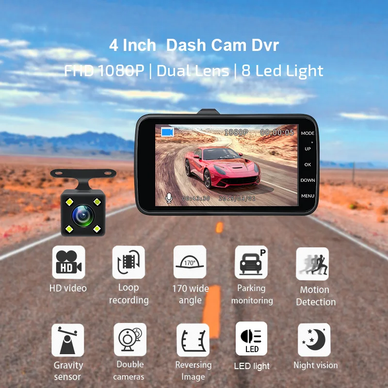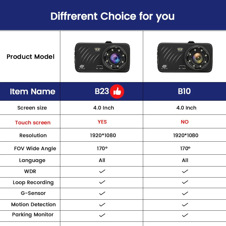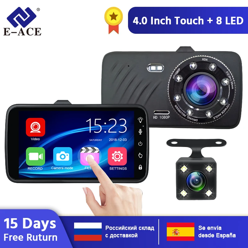 E-ACE Car Dvr 4.0 Inch Touch Dash Cam FHD 1080P Video Recorder Dual Lens Mini Dashcam with Rear View Camera Auto Registrar Dvrs : Click here