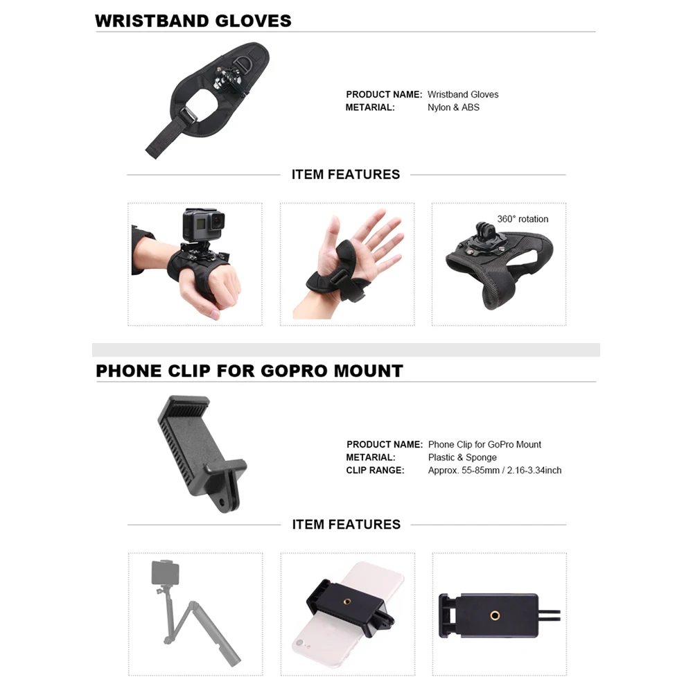 Action Camera Accessories Kit for Gopro Hero 7 6 5 4 3 Session Set for Xiaomi Yi 4K Sjcam Sj7 Eken only US $12.55