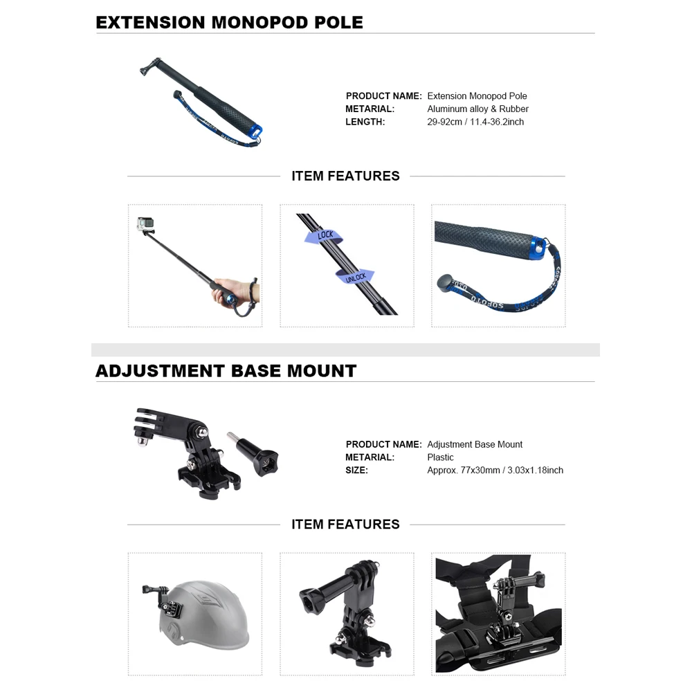Promo Action Camera Accessories Kit for Gopro Hero 7 6 5 4 3 Session Set for Xiaomi Yi 4K Sjcam Sj7 Eken