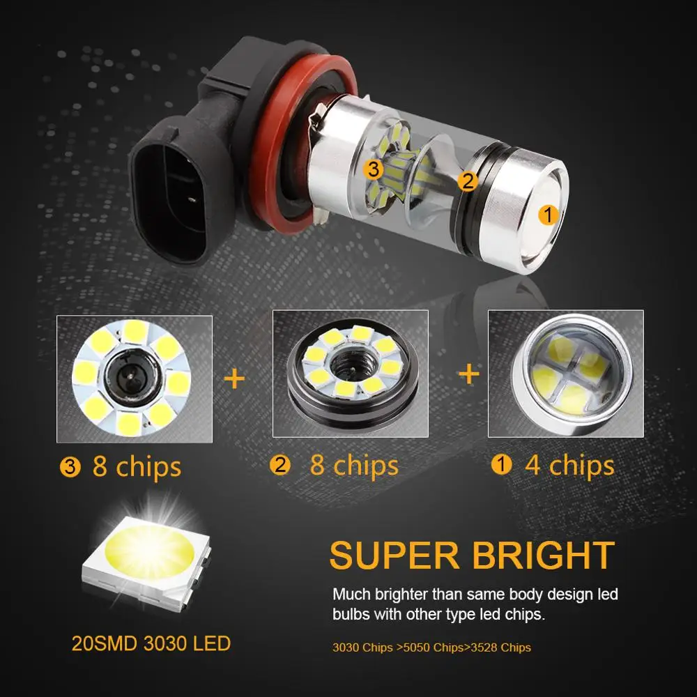 Canbus H8 H11 LED HB3 9005 HB4 9006 Car Fog Lamp 6000K White Error Free Auto Bulbs 12V : Click here